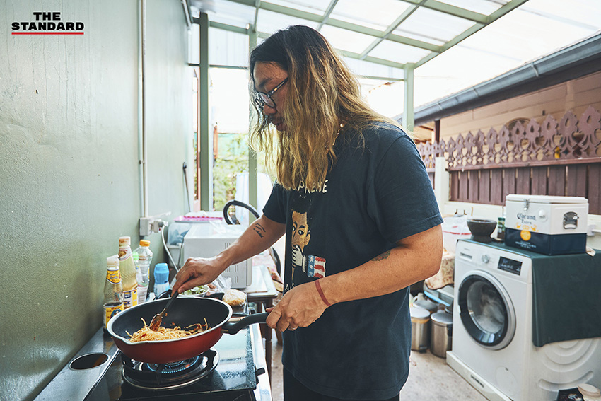 ด้านวิวบอกว่างานที่ทำปกติคือการออกกองถ่าย ดูแลเสื้อผ้าของศิลปิน แต่พอมีวิกฤตการแพร่ระบาดของโรคโควิด-19 กองถ่ายไม่มี รายได้ก็ไม่มีตามไปด้วย แต่โชคดีที่เรามีโฮสเทลเล็กๆ ของตัวเอง ก่อนหน้านี้ก็มีแนวคิดอยากทำกับข้าวขายที่โฮสเทล เป็นกับข้าวสูตรคุณยาย แต่ยังไม่มีโอกาสได้ลงมือทำ เพราะงานที่ยุ่งทั้งคู่ เคยคิดอยากลองทำในวันเสาร์-อาทิตย์ก็เหนื่อยแล้ว ช่วงนี้ว่างจึงได้เปิดร้านออนไลน์ โดยมีทั้งเพจและไอจีในชื่อ ‘บ้านวันชาติ’ ทำกับข้าวพรีออร์เดอร์ ส่งเดลิเวอรี ซึ่งตอนนี้ก็มีลูกค้าเข้ามาอยู่เรื่อยๆ