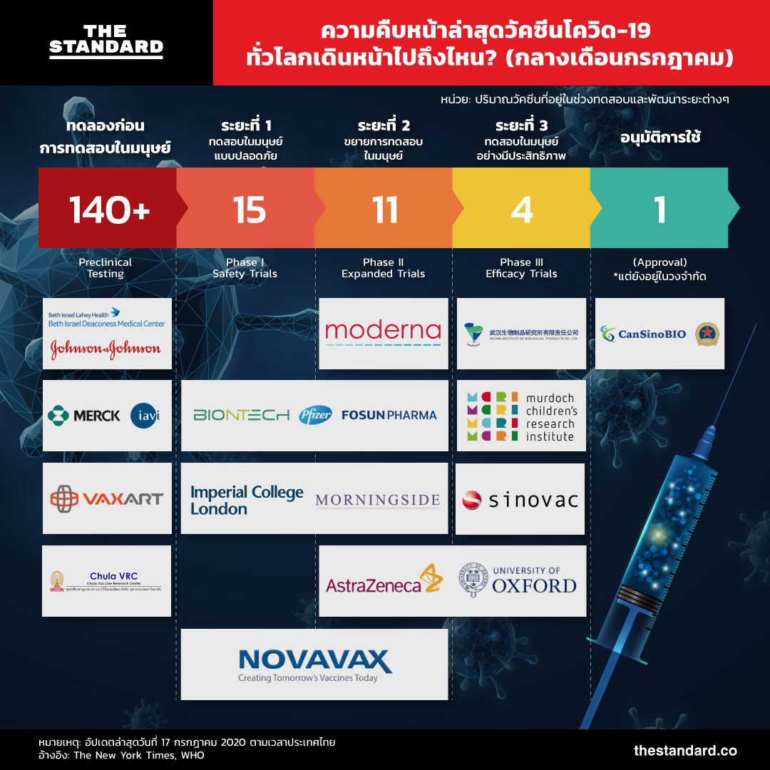 อ่านขั้นตอนพัฒนาวัคซีนโควิด-19 และความคืบหน้าทีมวิจัยจากทั่วโลก เพิ่มเติมได้ที่ https://thestandard.co/coronavirus-vaccine-tracker/