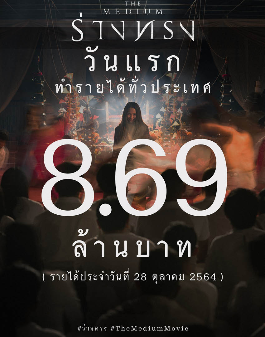 หลอนแรงตั้งแต่วันแรกสำหรับ ร่างทรง ภาพยนตร์สยองขวัญเรื่องล่าสุดของผู้กำกับ โต้ง-บรรจง ปิสัญธนะกูล ที่พึ่งจะเข้าฉายอย่างเป็นทางการไปเมื่อวันที่ 28 ตุลาคมที่ผ่านมา โดยสามารถกวาดรายได้เปิดตัววันแรกในประเทศไปแล้วกว่า 8.69 ล้านบาท ซึ่งถือเป็นการเริ่มต้นที่ดีทั้งในด้านกระแสตอบรับจากผู้ชมหนังตั้งแต่ภาครัฐเปิดไฟเขียวให้ผู้ประกอบธุรกิจ ‘โรงภาพยนตร์’ กลับมาเปิดให้บริการอีกครั้ง รวมไปถึงคำวิจารณ์จากคอหนังชาวไทยที่ได้ชมแล้วก็เป็นไปในแนวบวก