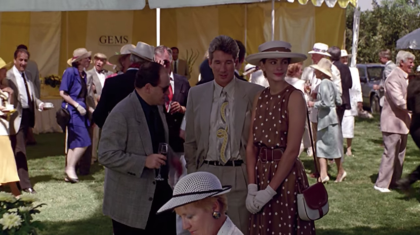 อีกหนึ่งเงื่อนไขปัจจัยที่ชี้เป็นชี้ตายของหนังเรื่อง Pretty Woman ได้แก่การคัดเลือก Julia Roberts สำหรับบทที่เหมือนกับถูกออกแบบตัดเย็บมาให้กับเธอโดยเฉพาะ แต่ความเปล่งประกายฉายแสงของเธอก็ยังผูกโยงอยู่กับเสื้อผ้าหน้าผม และโดยเฉพาะคอสตูม (ผลงานการออกแบบของ Marilyn Vance) ที่เธอสวมใส่อย่างน้อยสองฉาก ซึ่งกลายเป็นภาพจดจำของหนังไปโดยปริยาย หนึ่งก็คือได้แก่ชุดโพลก้าด็อตสีน้ำตาลในฉากที่เธอกับพระเอกไปร่วมชมเกมการแข่งขันโปโล และชุดราตรีสีแดงแรงฤทธิ์ในฉากที่ทั้งสองคนไปดูโอเปราด้วยกัน