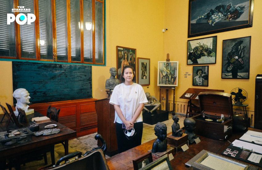 และนั่นจึงทำให้เรามายืนอยู่ที่พิพิธภัณฑสถานแห่งชาติ ศิลป์ พีระศรี อนุสรณ์ ที่ตั้งอยู่ในพื้นที่เดียวกับสำนักงานกรมศิลปากร ห่างจากตึกถาวรวัตถุเพียง 200 เมตรเท่านั้น ที่นี่เราได้เจอกับคุณผึ้งอีกครั้ง โดยเธอเล่าให้ฟังว่า สำหรับการทำงานในช่วงแรกของอาจารย์ศิลป์นั้นได้นักเรียนจากโรงเรียนเพาะช่างมาช่วยงาน ซึ่งทุกคนล้วนมีพื้นฐานทางศิลปะแบบไทย แต่ไม่ได้มีความรู้เชิงทฤษฎี (Academic) เรื่องกายวิภาคศาสตร์ (Anatomy) หรือเรื่องของแสงเงา นั่นเลยเป็นแนวคิดให้อาจารย์ศิลป์ก่อตั้งโรงเรียนประณีตศิลปกรรม เพื่อนำวิชาแบบวิทยาลัยในยุโรปมาสอนคนไทย ก่อนที่จะพัฒนาเป็นมหาวิทยาลัยศิลปากร มหาวิทยาลัยเฉพาะทางด้านศิลปะ ซึ่งทำให้เกิดรูปแบบศิลปะร่วมสมัยในสยามขึ้นท้ายที่สุด