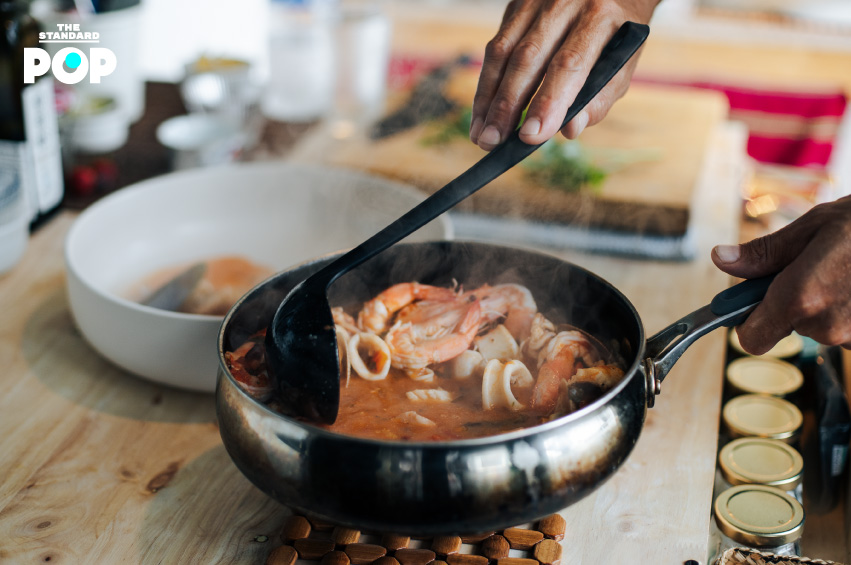 ความตั้งใจของทางร้านคือ การทำอาหารอิตาเลียนโฮมเมดที่ใช้วัตถุดิบนำเข้า เพื่อให้ได้รสชาติแบบอิตาเลียนแท้ จะมีบางส่วนเท่านั้นที่ใช้วัตถุดิบท้องถิ่น อย่างผักหรือมะเขือเทศ อาหารของที่นี่จะเสิร์ฟเป็นคอร์ส คอร์สละ 4 จาน มีจานเรียกน้ำย่อย จานพาสต้า จานหลัก และขนมหวาน คอร์สซีฟู้ดเริ่มต้นที่ 1,000 บาทต่อคน ส่วนคอร์สเนื้อเริ่มต้นที่ 1,300 บาทต่อคน โดยราคาจะปรับเปลี่ยนตามเมนูที่เลือก (เนื่องจากทาง THE STANDARD POP ติดต่อเข้าไปถ่ายทำ ทางร้านจึงเสิร์ฟเมนูจากคอร์สซีฟู้ดและคอร์สเนื้อผสมกัน เพื่อผู้อ่านจะได้เห็นเมนูที่หลากหลาย)