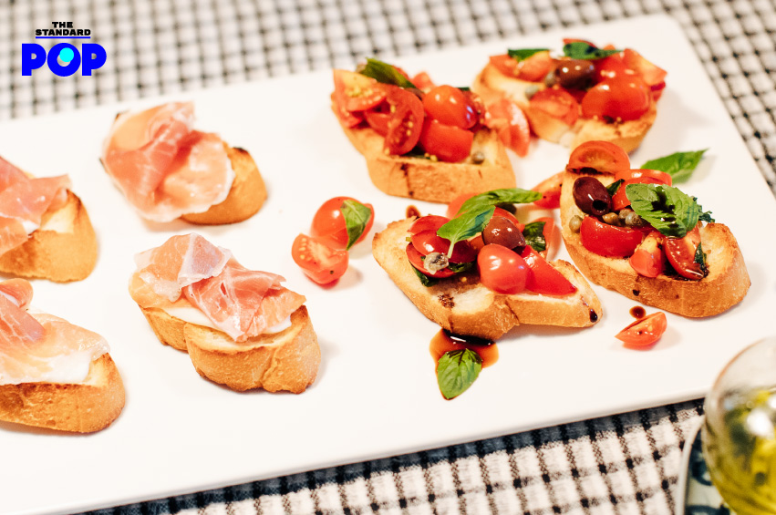 เริ่มต้นที่เมนูเรียกน้ำย่อย Bruschetta al Pomodoro และ Bruschetta Prosciutto di Parma e Mozzarella อาหารเรียกน้ำย่อยของชาวอิตาเลียนที่เกิดจากการนำขนมปังไปย่าง ทาด้วยน้ำมันมะกอกและกระเทียม เป็นเมนูที่ชาวอิตาเลียนทุกบ้านต้องเคยทำ ส่วนหน้าของขนมปังนั้นจะเป็นอะไรก็ได้ตามที่ชอบ ทางร้านเลือกเป็นหน้ามะเขือเทศเชอร์รีสีแดงสดรสชาติหวานคู่ใบโหระพา มะกอก และเคเพอร์ ถ้าคุณเป็นคนไม่กินมะเขือเทศ คุณจะสามารถกินมันได้อย่างง่ายดาย เพราะรสชาติดีเหลือเชื่อ ส่วนอีกชิ้นเป็นหน้าพาร์มาแฮมรสชาติเข้มข้นและชีสมอสซาเรลลาที่เรียกน้ำย่อยได้ดีทีเดียว ส่วนอาหารเรียกน้ำย่อยจานเนื้อจะเป็น Tartara di Manzo con Crostini al Tartufo หรือ Beef Tatare ที่เลือกใช้เนื้อส่วนสะโพกของวัวที่มีสีสวยและนุ่มเมื่อเสิร์ฟแบบดิบมาสับให้ละเอียด มาพร้อมไข่ออร์แกนิกแยกมาให้ในถ้วยสำหรับเทลงไปเอง เสิร์ฟคู่กับขนมปังปิ้งทาเนยทรัฟเฟิลหอมกรุ่น ในแต่ละคำของจานนี้คุณจะได้กลิ่นใบไทม์ โรสแมรี หอมใหญ่ และทรัฟเฟิล พริบตาเดียวก็หมดทั้งจาน