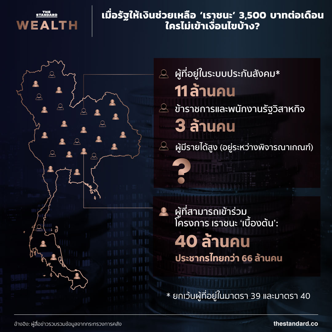 ล่าสุดรัฐบาลเปิดตัวมาตรการช่วยเหลือและเยียวยาประชาชนชื่อ ‘เราชนะ’ โดยจะให้เงินเยียวยา 3,500 บาทต่อเดือน เป็นเวลา 2 เดือน ซึ่งจะคัดกรองจากข้อมูลเดิมที่มีอยู่แล้ว เบื้องต้นมีถึง 40 ล้านคนที่เข้าเงื่อนไข แต่ใครบ้างที่ไม่ตรงเงื่อนไขและถูกคัดออกจากมาตรการเราชนะ?