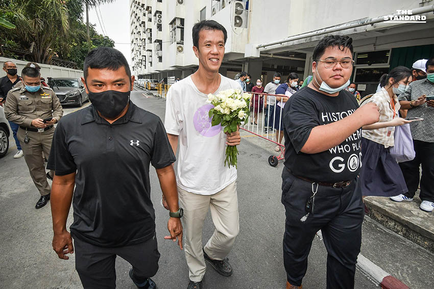 วันนี้ (31 มีนาคม) ที่สำนักงานอัยการสูงสุด ถนนรัชดาภิเษก เอกชัย หงส์กังวาน, บุญเกื้อหนุน เป้าทอง หรือฟรานซิส นักเคลื่อนไหวทางการเมือง, สุรนาถ แป้นประเสริฐ หรือตัน ผู้ประสานงานเครือข่ายเยาวชนลดปัจจัยเสี่ยง (Active Youth), ชนาธิป ชัยชะยางกูร และ ภาณุภัทร ไผ่เกาะ 5 ผู้ต้องหา เดินทางมารายงานตัวตามที่พนักงานอัยการคดีอาญา 10 นัดสั่งคดี กรณีที่พนักงานสอบสวน สถานีตำรวจนครบาล (สน.) ดุสิต มีความเห็นสมควรสั่งฟ้อง พร้อมคัดค้านการประกันตัวในความผิดฐาน ประทุษร้ายต่อเสรีภาพของพระราชินีฯ ตามประมวลกฎหมายอาญา มาตรา 110 กับข้อหามั่วสุมตั้งแต่ 10 คนขึ้นไปฯ ให้เกิดความวุ่นวาย มาตรา 215 และกีดขวางการจราจรฯ กรณีชุมนุมใกล้ขบวนเสด็จพระราชินีเมื่อวันที่ 14 ตุลาคม 2563