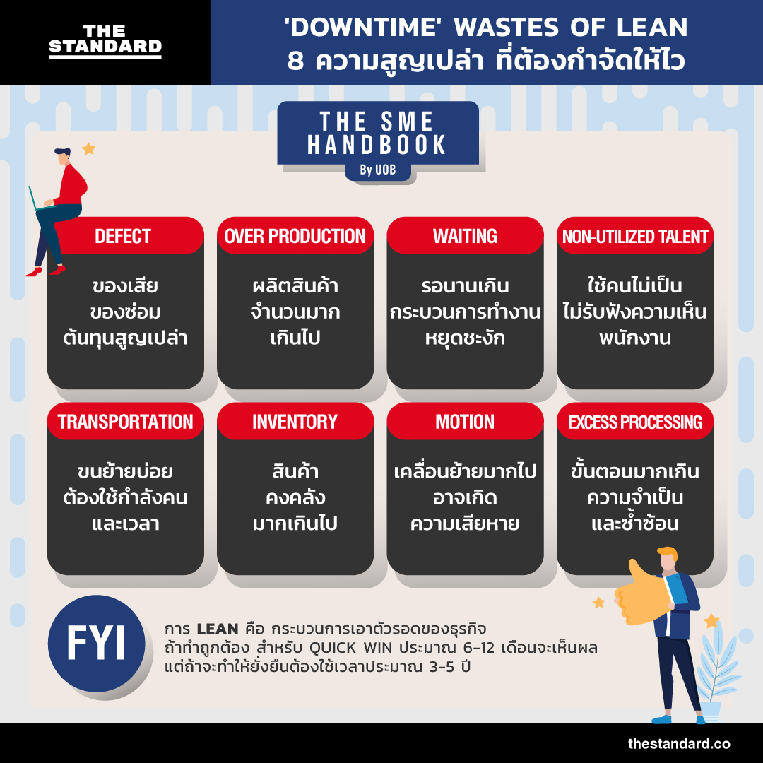 และเมื่อพูดถึงการปรับองค์กรหรือธุรกิจให้คล่องตัว แนวคิดการทำ Lean ก็มักจะถูกพูดถึงอยู่เสมอ ตามมาด้วย Case Study ในตำนานอย่าง Toyota ซึ่งกลายเป็นต้นแบบการทำ Lean ที่ประสบความสำเร็จ ด้วยการกำหนดคุณค่าที่เป็นเป้าหมายของระบบการผลิตของตนเอง เพื่อส่งมอบปัจจัยสามประการให้กับลูกค้าคือ คุณภาพสูงสุด ต้นทุนต่ำสุด และระยะเวลาการผลิตที่สั้นที่สุด ถ้าองค์กรขนาดใหญ่ที่มีขั้นตอนการผลิตซับซ้อนยัง Lean ได้ องค์กรขนาดเล็กโดยเฉพาะผู้ประกอบการ SMEs ย่อมได้เปรียบยิ่งกว่า เพราะคนยิ่งน้อยยิ่งขยับตัวได้ง่าย คุณก็แค่ต้องรู้หลัก ‘บริหาร SMEs แบบ Lean ลดต้นทุน ยกประสิทธิภาพทั้งระบบ เพิ่มกำไรยั่งยืน’ อีกหนึ่งบทเรียนฉบับเร่งรัด คัดแต่เฉพาะประเด็นเด็ดๆ จากพอดแคสต์ THE SME HANDBOOK by UOB เอพิโสดที่ห้า พอดแคสต์ที่ทำหน้าที่เป็นคู่มือสำหรับผู้ประกอบการ SMEs ที่ได้รับผลกระทบจากโควิด โดย สิริพงศ์ จึงถาวรรณ ผู้เชี่ยวชาญด้านการจัดการแบบลีน (Lean Master) ที่มาพร้อมวิธีขจัดความสูญเปล่า และกลยุทธ์ Quick Win ทางลัด Lean ให้ไวในช่วงวิกฤต