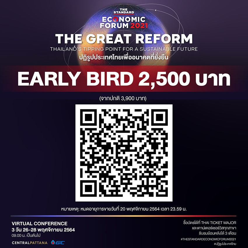 📌 ราคาพิเศษ 2,500 บาท! จากปกติ 3,900 บาท ซื้อบัตร THE STANDARD ECONOMIC FORUM 2021 ก่อนวันที่ 20 พฤศจิกายน 2564