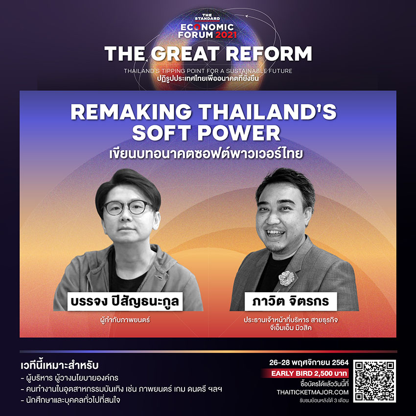 ร่วมเขียนบทอนาคต Soft Power ของไทยไปกับ บรรจง ปิสัญธนะกูล ผู้กำกับภาพยนตร์ ร่างทรง และ ภาวิต จิตรกร ประธานเจ้าหน้าที่บริหารสายธุรกิจ GMM Music
