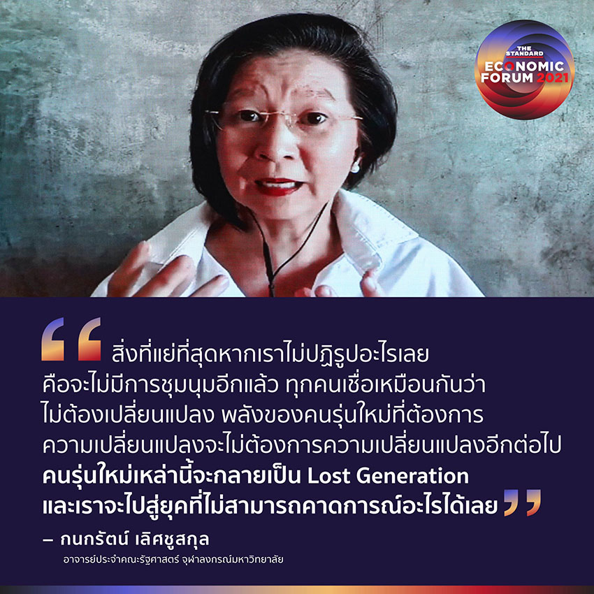 “สิ่งที่แย่ที่สุดหากเราไม่ปฏิรูปอะไรเลย คือจะไม่มีการชุมนุมอีกแล้ว ทุกคนเชื่อเหมือนกันว่าไม่ต้องเปลี่ยนแปลง พลังของคนรุ่นใหม่ที่ต้องการความเปลี่ยนแปลงจะไม่ต้องการความเปลี่ยนแปลงอีกต่อไป คนรุ่นใหม่เหล่านี้จะกลายเป็น Lost Generation และเราจะไปสู่ยุคที่ไม่สามารถคาดการณ์อะไรได้เลย”