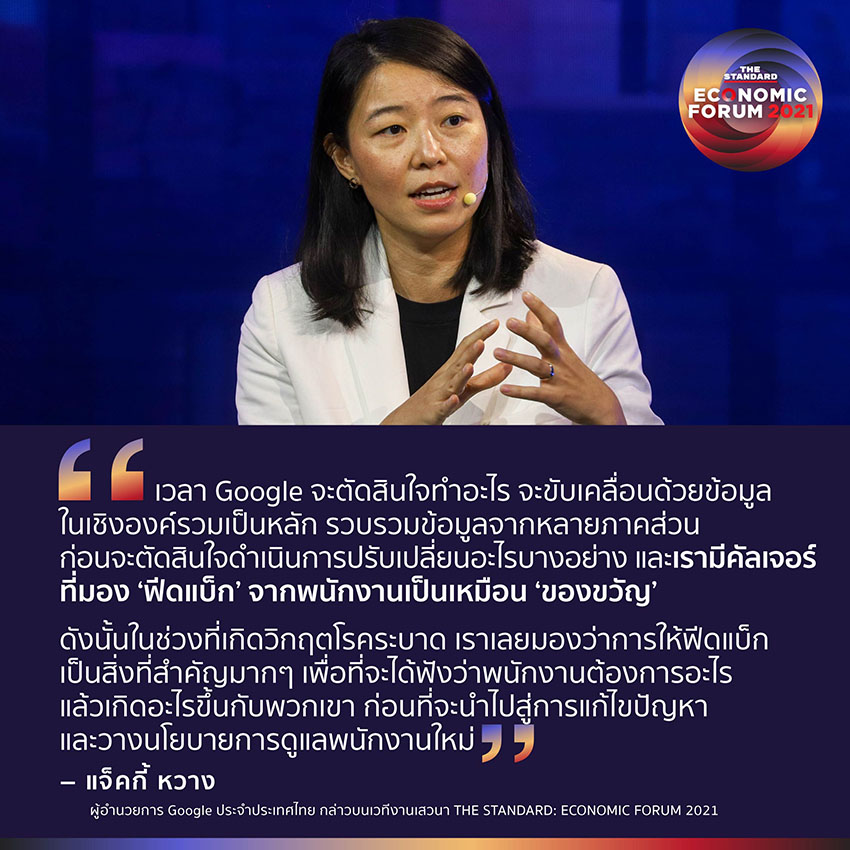 แจ็คกี้ หวาง ผู้อำนวยการ Google ประจำประเทศไทย กล่าวบนเวทีงานเสวนา THE STANDARD: ECONOMIC FORUM 2021