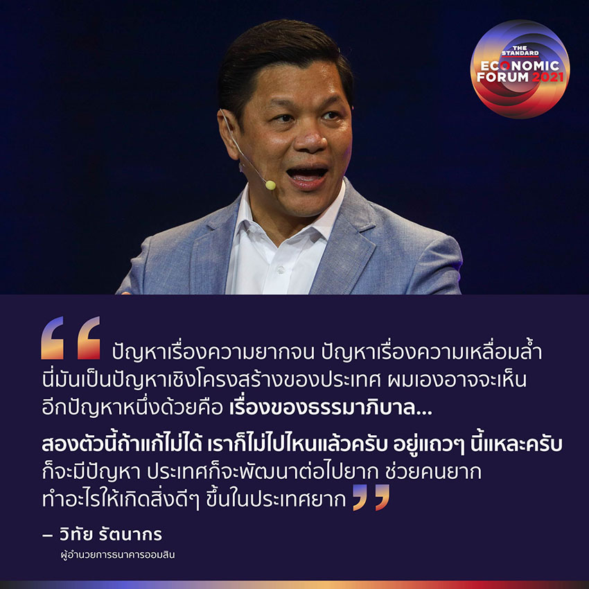 “ปัญหาเรื่องความยากจน ปัญหาเรื่องความเหลื่อมล้ำนี่มันเป็นปัญหาเชิงโครงสร้างของประเทศ ผมเองอาจจะเห็นอีกปัญหาหนึ่งด้วยคือ เรื่องของธรรมาภิบาล…
