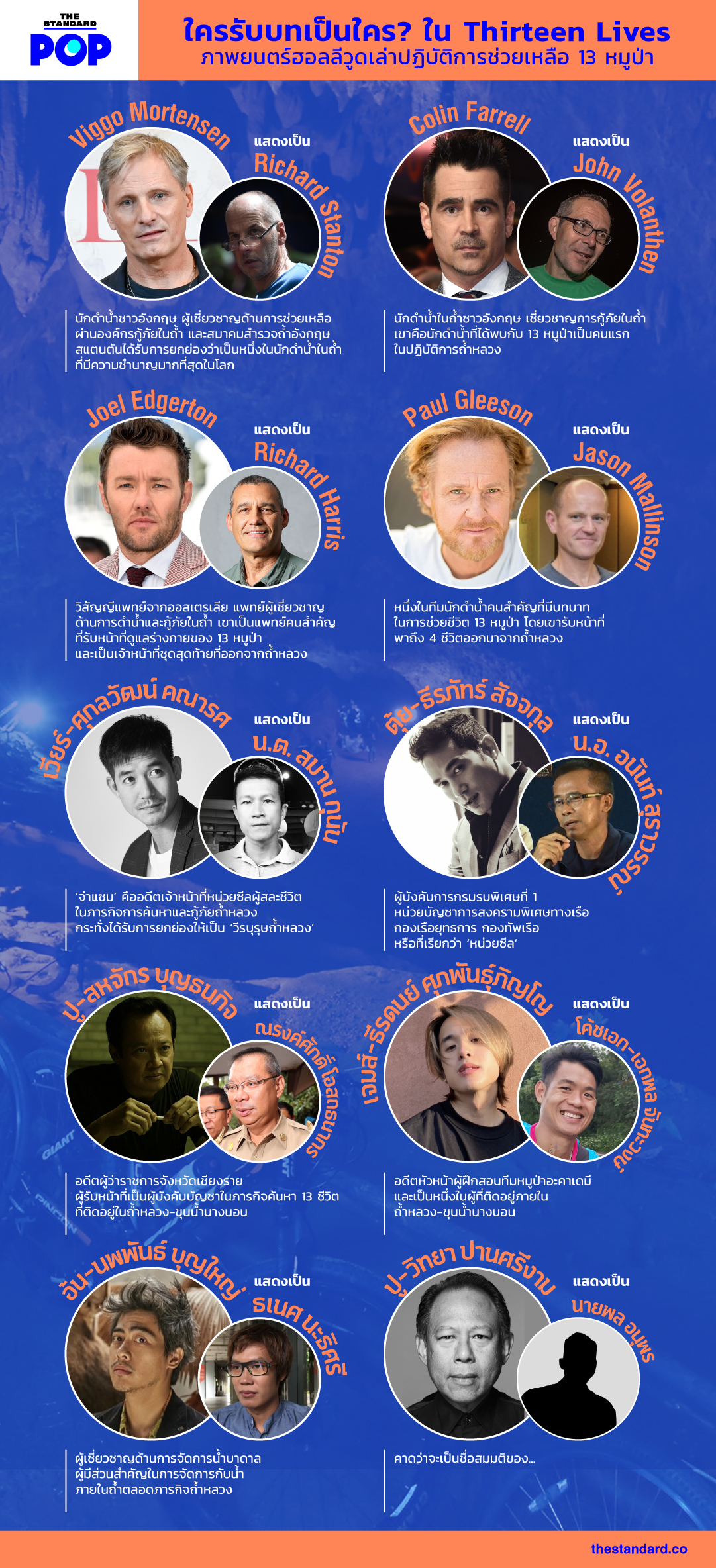 THE STANDARD POP ถือโอกาสนี้ รวบรวมมาให้ว่าสำหรับ Thirteen Lives นักแสดงคนไหนจะสวมบทเป็นใครในชีวิตจริงบ้าง ส่วนใครจะเหมาะสมแค่ไหน คุณเห็นด้วยแค่ไหน แวะมาบอกกันได้ที่ช่องคอมเมนต์
