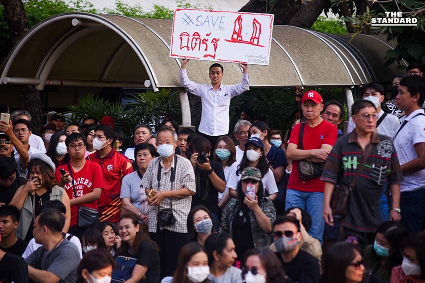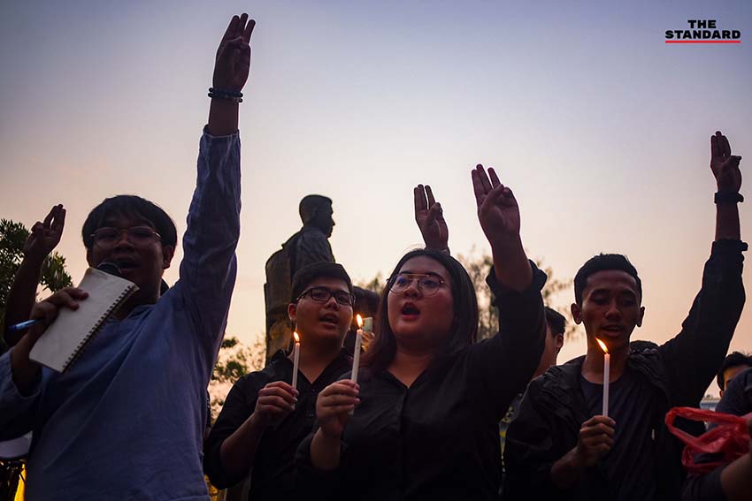 กลุ่มสหภาพนักเรียน นิสิต นักศึกษาแห่งประเทศไทย (สนท.) จัดกิจกรรม ‘ประเทศนี้ไม่มีความยุติธรรม’ แฟลชม็อบโดยมีนิสิตนักศึกษาและประชาชนร่วมกันชูสามนิ้วเพื่อเป็นสัญลักษณ์หยุดความอยุติธรรมของประเทศไทย พร้อมจุดเทียนแสดงเจตนาทวงคืนความยุติธรรมจากกรณีการตัดสินยุบพรรคอนาคตใหม่ ที่ลานปรีดี พนมยงค์ มหาวิทยาลัยธรรมศาสตร์ ท่าพระจันทร์ เมื่อวันที่ 22 กุมภาพันธ์ 2563
