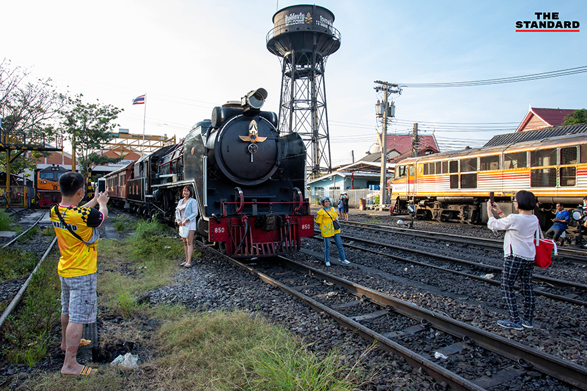 โดย THE STANDARD ได้ลงพื้นที่สำรวจบรรยากาศที่สถานีรถไฟธนบุรีเมื่อช่วงเย็นที่ผ่านมา พบว่ามีประชาชนจำนวนมากที่เดินทางมาชมบรรยากาศการเตรียมพร้อมหัวรถจักรไอน้ำรุ่นแปซิฟิก 824 และ 850 ซึ่งเป็นหัวรถไฟของญี่ปุ่น