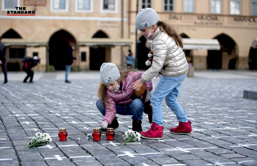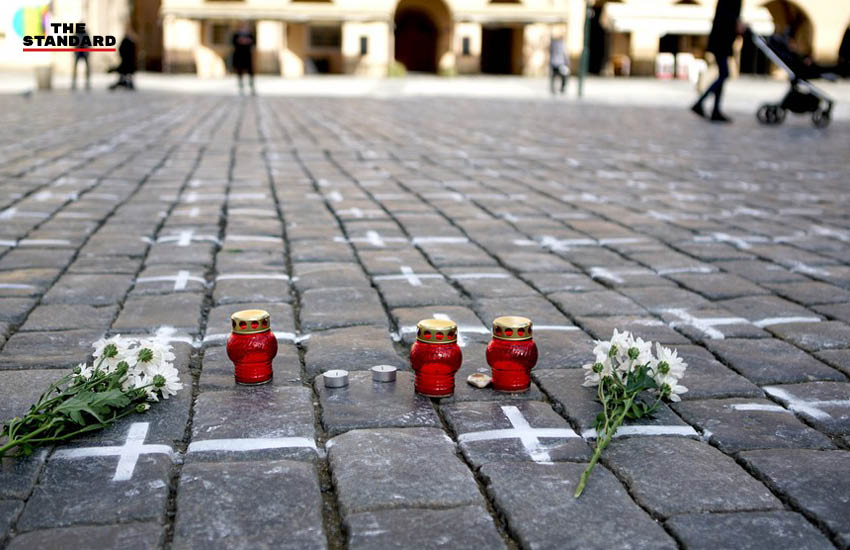 เมื่อวานนี้ (23 มีนาคม) ประชาชนจุดเทียนและวางดอกไม้ลงบนพื้นที่เต็มไปด้วยรูปกางเขนสีขาวนับพัน ซึ่งถูกวาดขึ้นเพื่อรำลึกถึงเหยื่อผู้เสียชีวิตจากการระบาดของโรคติดเชื้อไวรัสโคโรนาสายพันธุ์ใหม่ (โควิด-19) บริเวณจัตุรัสเมืองเก่าของกรุงปราก เมืองหลวงของสาธารณรัฐเช็ก