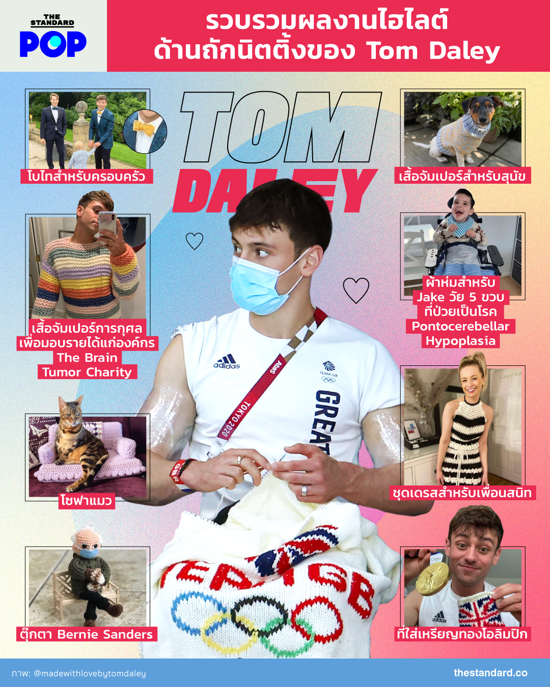 Tom เริ่มการถักนิตติ้งตั้งแต่ช่วงที่เขาต้องกักตัวอยู่บ้านเมื่อปีที่แล้ว (2020) เพราะอยากหากิจกรรมใหม่ให้ตัวเองเพื่อช่วยสงบสติอารมณ์และทำให้ตัวเองไม่ต้องเครียด โดยเขาก็ได้เริ่มแชร์ผลงานต่างๆ ของเขาผ่านอินสตาแกรม @madewithlovebytomdaley ตั้งแต่เมื่อเดือนกันยายน และหลังจากภาพไวรัลเมื่อวานก็มีคนแห่เข้าไปตามเกินกว่า 400,000 ฟอลโลเวอร์แล้ว