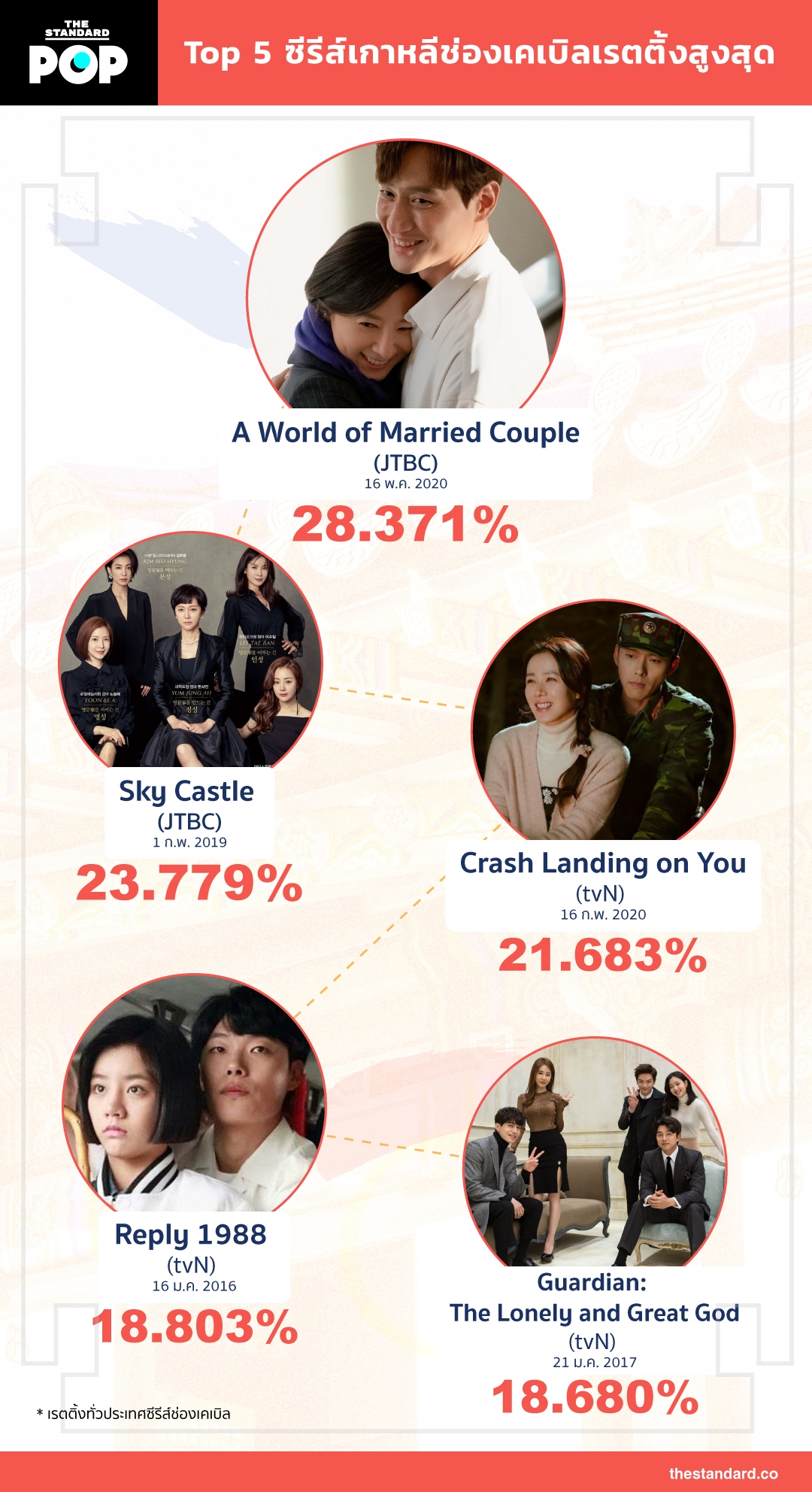 Top 5 ซีรีส์เกาหลีช่องเคเบิลเรตติ้งสูงสุด