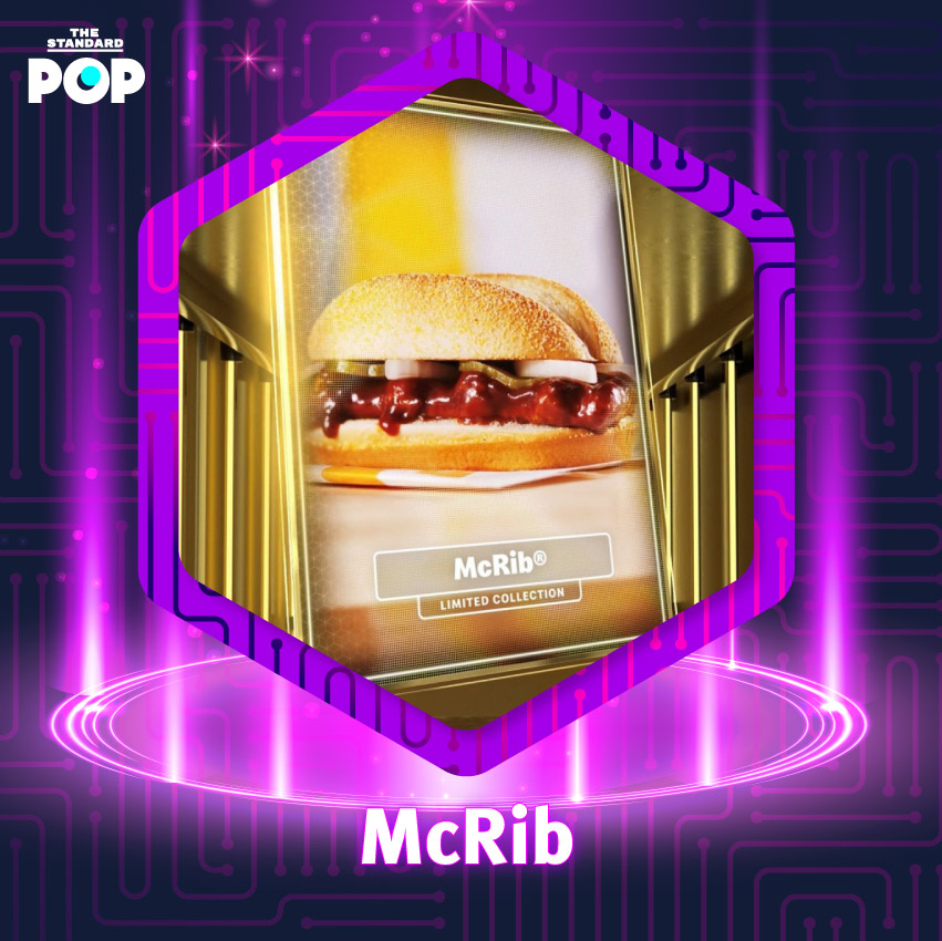 นอกจากสิ่งของแล้ว NFT ก็มาในรูปแบบของกิน เมื่อ McDonald’s ปล่อย McRib NFT ออกมาเมื่อปลายปีที่ผ่านมา เพื่อเป็นส่วนหนึ่งของการสร้างแบรนด์ แต่ NFT เมนูนี้ไม่ได้มีมูลค่าแต่อย่างใด เพราะ McDonald’s ทำออกมาสำหรับผู้โชคดีส่วนน้อยที่กดติดตามเพจ Twitter แต่ทำไมถึงต้องเป็น McRib ด้วย เป็นเฟรนช์ฟรายส์ไม่ได้หรือ? สาเหตุที่แท้จริงก็คือ ตั้งแต่ปี 1981 McDonald’s ทำเมนูนี้ออกมาขายนานๆ ที แบบคาดเดาไม่ได้ การกลับมาของ McRib ในแต่ละครั้งจึงเป็นปรากฏการณ์ที่ยิ่งใหญ่ ทำให้สำนักข่าวอเมริกาทั่วประเทศไม่ว่าจะเป็น ABC News, The Atlantic, The New York Times และสำนักอื่นๆ กระจายข่าวแบบพลาดไม่ได้ เพราะเมนูนี้มีคนติดตามเหมือนลัทธิเลยก็ว่าได้ ผู้ที่ได้ครอบครอง McRib NFT จึงไม่จำเป็นต้องบอกลาเมนูนี้อีก เพราะมีไว้เป็นของส่วนตัวแล้วนั่นเอง