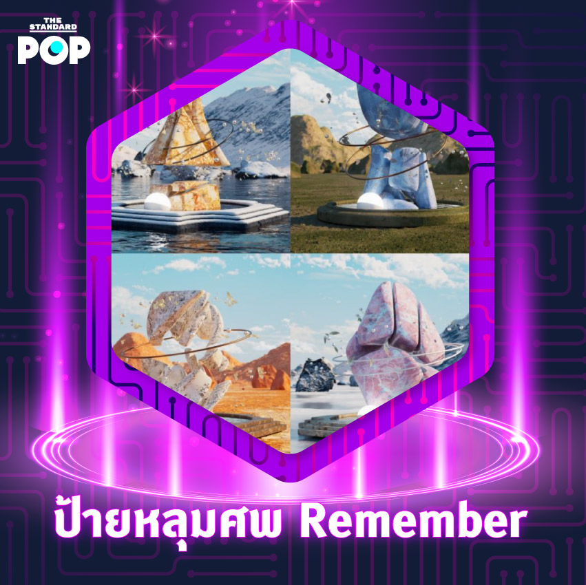 เมื่อเทคโนโลยีกำลังแทรกซึมเข้ามาในชีวิตของเรามากขึ้นเรื่อยๆ ไม่เว้นแม้แต่โลกแห่งความตาย เพราะป้ายหลุมศพในรูปแบบ NFT ได้เกิดขึ้นแล้ว โดยโปรเจกต์ที่ชื่อ Remember ได้สร้างคอลเล็กชันป้ายหลุมศพดีไซน์สุดล้ำไม่ซำ้กันจำนวน 5,000 ชิ้น เพื่อให้เราสามารถรำลึกถึงผู้ที่จากไปเมื่อไรก็ได้ในโลกดิจิทัล ด้วยรูปแบบของวิดีโอ ภาพ เสียง และสิ่งของต่างๆ ซึ่งป้ายหลุมศพแต่ละอันจะถูกตั้งไว้บนที่ดินซึ่งทางทีมงานได้ซื้อไว้ใน Metaverse