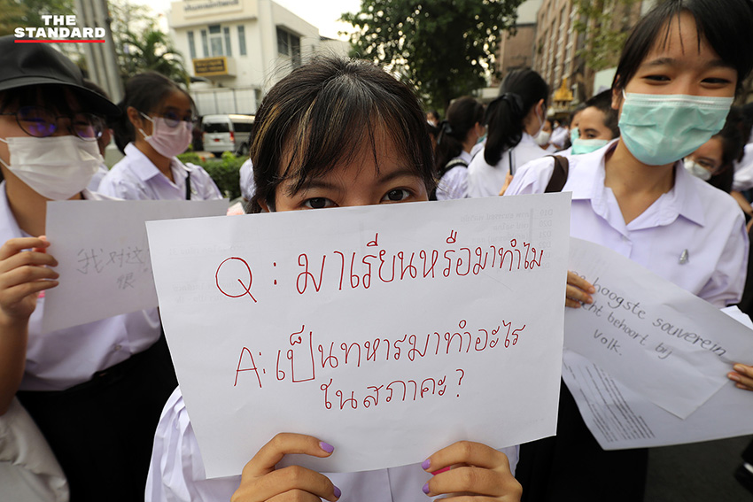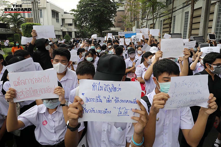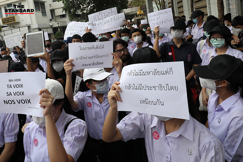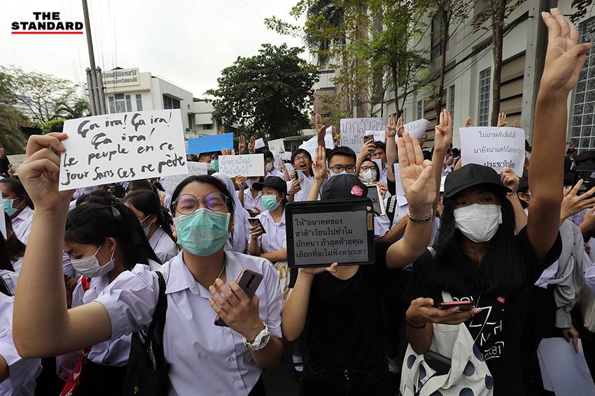 การชุมนุมของนิสิต-นักศึกษาเริ่มขยายวงเข้าไปในรั้วโรงเรียนระดับมัธยมศึกษา โดยเช้าวันนี้ (27 กุมภาพันธ์ 2563) นักเรียนโรงเรียนเตรียมอุดมศึกษา ใช้วันเกรดออก หรือวันรับผลคะแนนสอบรวมตัวบริเวณลานเทเล หรือลานหม่อมหลวงปิ่น โดยเปลี่ยนจากจุดนัดหมายเดิม คือสนามฟุตบอล หลังช่วงเย็นเมื่อวานนี้มีการออกหนังสือราชการไม่อนุญาตให้บุคคลภายนอกเข้ามาในบริเวณโรงเรียน และระบุว่าเมื่อนักเรียนทำกิจกรรมรับผลคะแนนเสร็จแล้ว ให้รีบเดินทางกลับบ้าน