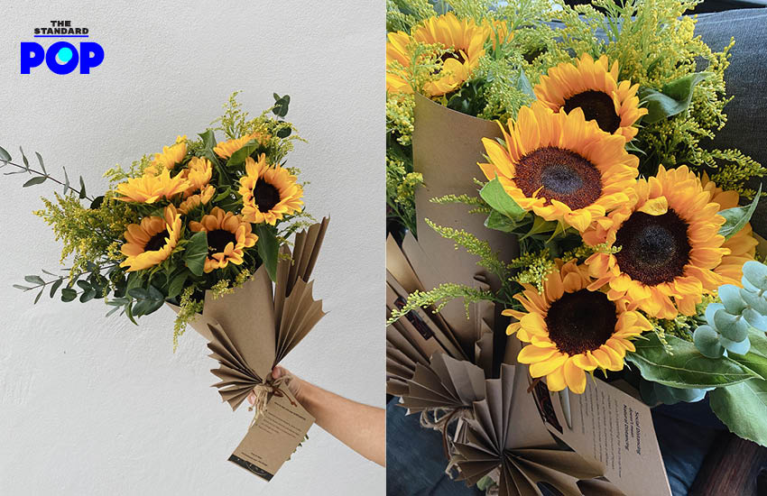 ในช่วงนี้ดอกไม้ในฤดูกาลคือดอกทานตะวัน ทางร้านก็พร้อมจะส่งสีเหลืองแสนสดใสของดอกทานตะวันไปให้คุณที่บ้านใน 3 รูปแบบ 3 ราคา ไม่ว่าจะเป็นชุดเล็กอย่าง Stand by Me (300 บาท) หรือจะชุดกลาง Close to You (500 บาท) และชุดใหญ่ Can’t Smile Without You (1,000 บาท)