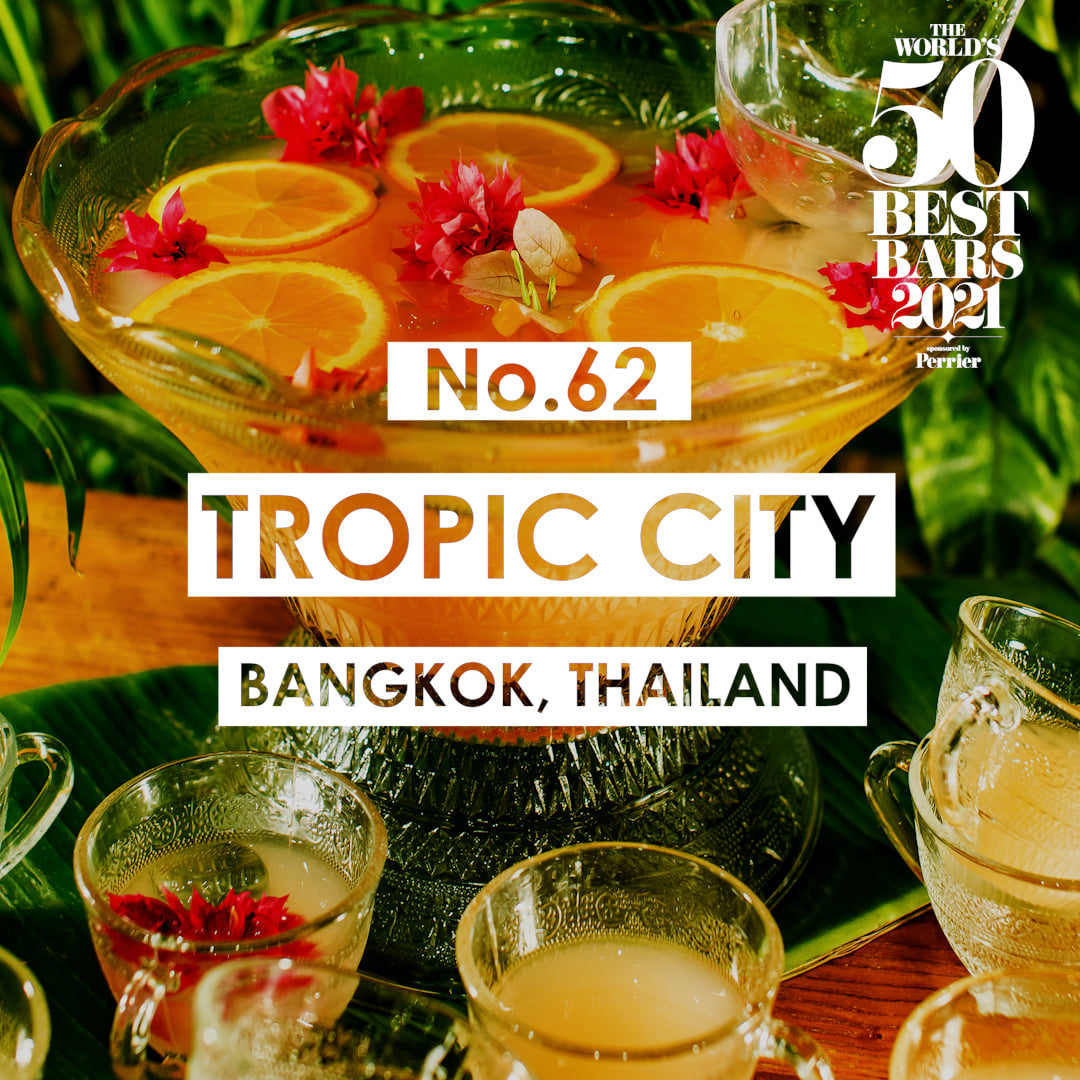 ข่าวดีสำหรับประเทศไทยก็คือ ในปีนี้มีบาร์จากประเทศไทยทั้งหมด 2 บาร์ได้ขึ้นแท่นติดอันดับกับเขาด้วย ได้แก่ บาร์น้องใหม่แห่งโรงแรม Four Seasons อย่าง BKK Social Club ในอันดับที่ 90 และทรอปิคัลบาร์ย่านเจริญกรุง Tropic City ในอันดับที่ 62 ที่สำคัญที่สุดในตอนนี้ทั้งสองบาร์กลับมาเปิดให้บริการภายใต้มาตรการควบคุมการแพร่ระบาดของไวรัสโควิด-19 แล้ว หลังรัฐอนุญาตให้ร้านอาหารนั่งดื่มในร้านได้ถึง 23.00 น. เริ่ม 1 ธันวาคม 2564 เป็นต้นไป* เท่ากับว่าคุณสามารถไปแสดงความยินดีกับพวกเขาได้ถึงร้านแล้ว