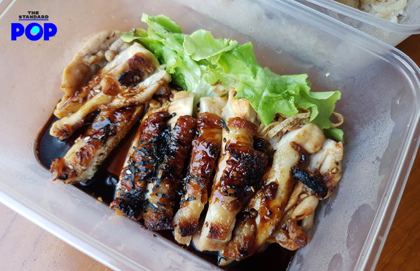 และไก่เทอริยากิ (100 บาท) ไก่ส่วนสะโพกนำมาย่างบนเตาหน้าเดียวเพื่อให้หนังไก่กรอบน่ากิน ทว่าเนื้อด้านในยังคงฉ่ำซอส เวลากินอย่าลืมราดซอสเพื่อความอร่อยแบบครบสูตร