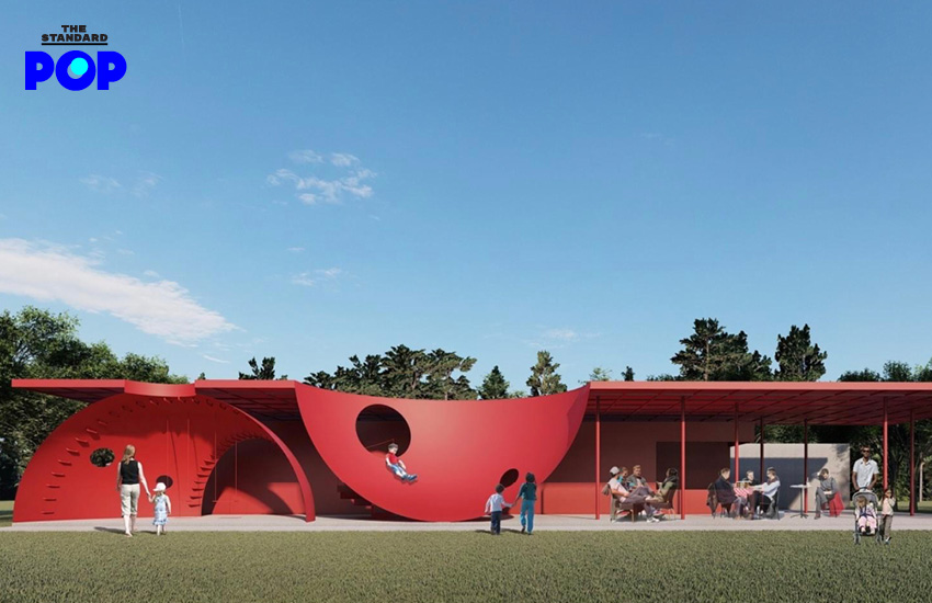 สิ่งก่อสร้างสีแดงสดเหล่านี้เป็นทั้งสไลเดอร์รูปทรงโดม หรือสไลเดอร์ผนังโค้งที่ปีนป่ายได้สนุกไม่ว่าจะเป็นผู้ใหญ่หรือเด็ก หรือจะเป็นเครื่องเล่นเบาๆ อย่างชิงช้า และสามารถมั่นใจในความปลอดภัยได้เพราะสนามทุกคนเล่นแห่งนี้ถูกออกแบบอย่างพิถีพิถันโดย POAR สตูดิโอออกแบบที่คิดมาเรียบร้อยแล้วว่าทุกอย่างควรเป็นอย่างไร