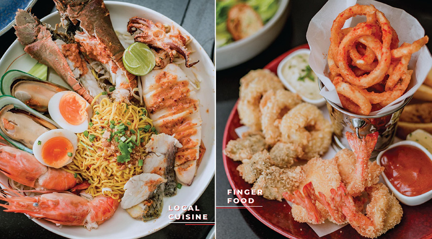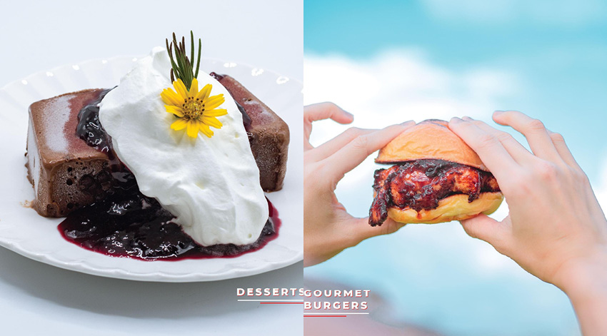ในส่วนของอาหาร เครื่องดื่ม ของหวาน ทางร้านมีให้เลือกหลากหลาย เริ่มที่อาหารนานาชาติทั้งอาหารท้องถิ่นอย่างก๋วยเตี๋ยวทะเล หรือจะเป็นอาหารคอมฟอร์ต ของกินเล่น และเบอร์เกอร์โฮมเมด ส่วนของหวานและเครื่องดื่มก็แน่นไม่แพ้กันทั้งสโคน คัพเค้กอบสดใหม่ ไอศกรีมโฮมเมด ก็มีให้เลือกมากมาย