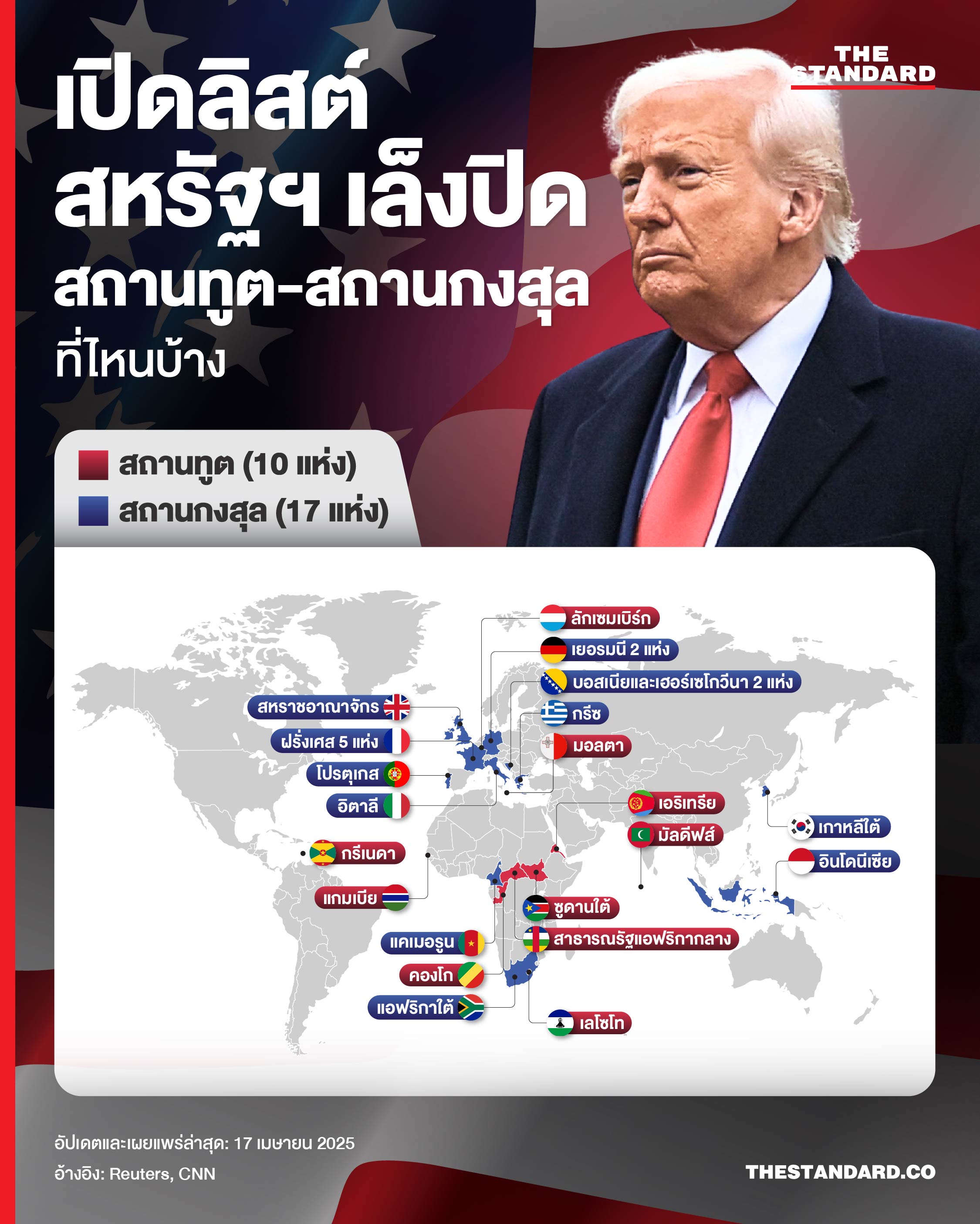 สหรัฐอเมริกาภายใต้การนำของประธานาธิบดีโดนัลด์ ทรัมป์ เล็งปิดสถานทูต-สถานกงสุลหลายแห่งทั่วโลก หวังปฏิรูปและปรับลดโครงสร้างภาครัฐ ซึ่งได้รับแรงหนุนจากหน่วยงานดูแลประสิทธิภาพรัฐบาล หรือ DOGE ที่มีอีลอน มัสก์ เป็นผู้ควบคุมดูแล เบื้องต้น มีการเสนอให้ปิดสถานทูต-สถานกงสุลอย่างน้อย 27 แห่ง โดยส่วนใหญ่ตั้งอยู่ในยุโรปและแอฟริกา รวมถึงในเอเชียและแคริบเบียนด้วย