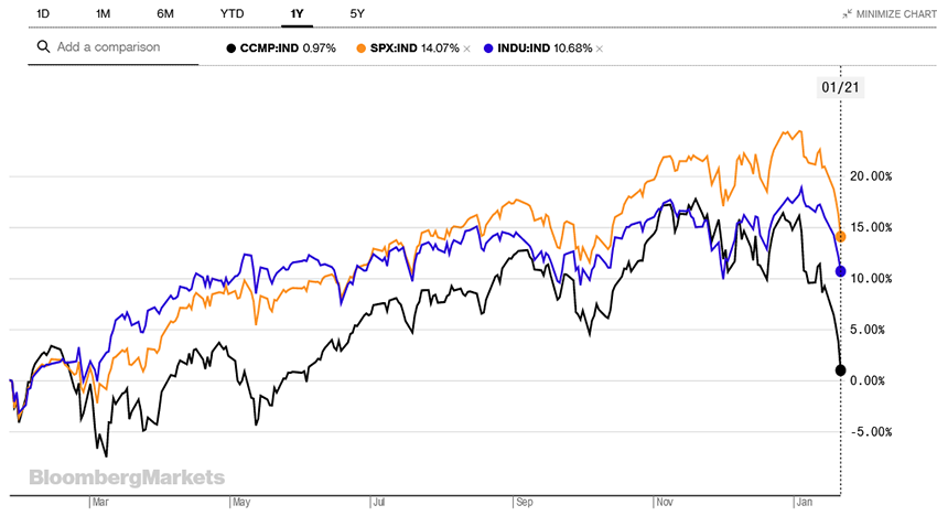 ดัชนีหลักของตลาดหุ้นสหรัฐฯ ในช่วงต้นปีที่ผ่านมา ทั้ง Dow Jones, S&P 500 และ Nasdaq ต่างปรับตัวลดลงอย่างต่อเนื่อง โดยลดลง 5.70%, 7.73% และ 11.99% ตามลำดับ ซึ่งในส่วนของ Nasdaq ที่ปรับตัวลดลงมากที่สุดนี้ เป็นการลดลงไปทำจุดต่ำสุดนับแต่เดือนกรกฎาคม 2021