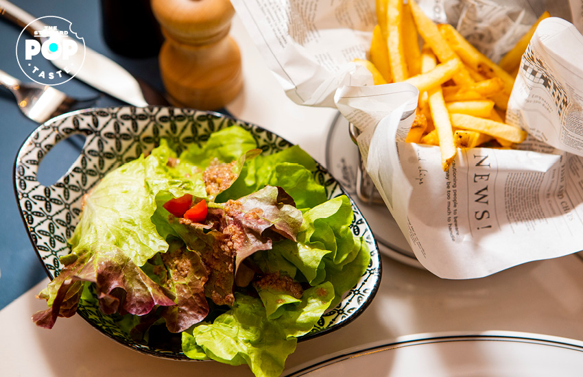 มาที่เมนูซิกเนเจอร์ของร้าน Victoria by Cocotte อย่าง Cafe de Paris Steak (1,490 บาท) เนื้อแบล็กแองกัสเทนเดอร์ลอยน์ 400 กรัม กับซอส Cafe de Paris ที่เป็นเนยสมุนไพร เสิร์ฟกับเฟรนช์ฟรายส์ สลัด และน้ำสลัด