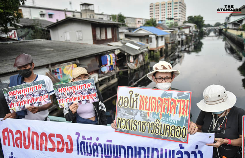 ส่วนชุมชนริมคลองแห่งนี้ชาวบ้านอาศัยอยู่กันมาแล้ว 50-60 ปี ซึ่งสำนักงานเขตหลักสี่ออกหมายเลขทะเบียนบ้านให้ถูกต้องตามกฎหมาย จึงรู้สึกว่าเจ้าหน้าที่ใช้อำนาจไล่ชาวบ้านอย่างไม่เป็นธรรม พร้อมถือป้ายข้อความไล่ผู้อำนวยการสำนักงานเขตออกจากตำแหน่งด้วย