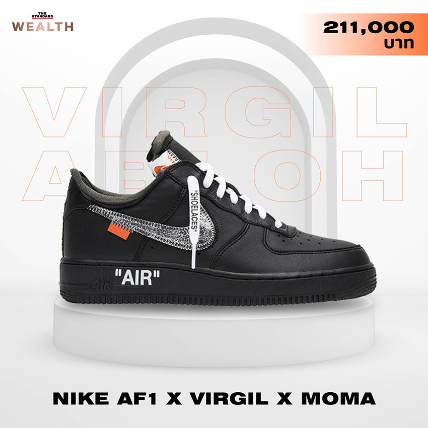 งานดีไซน์ของ Virgil Abloh ที่ทำงานร่วมกับ MoMA นิวยอร์ก (Museum of Modern Art) โดยนำดีไซน์ของ Nike Air Force 1 มาใส่รายละเอียดใหม่ วางจำหน่ายครั้งแรกในราคาราวๆ 5,900 บาทเท่านั้น ราคาเริ่มต้นเมื่อปีที่แล้วอยู่ที่ราวๆ 91,000 บาท