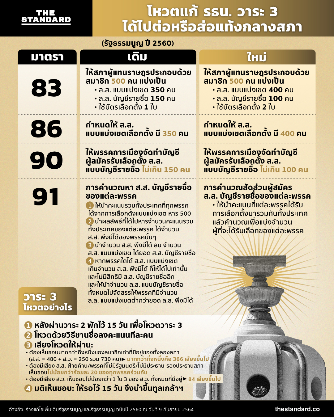 วันนี้ (10 กันยายน) ที่ประชุมร่วมของรัฐสภา มีวาระสำคัญคือการโหวตลงคะแนนในวาระ 3 ของร่างแก้ไขรัฐธรรมนูญ ฉบับปี 2560 ที่มีสาระสำคัญในการแก้จำนวน ส.ส. เขต และ ส.ส. บัญชีรายชื่อ โดยเฉพาะการกลับไปใช้ระบบเลือกตั้งแบบบัตร 2 ใบ ซึ่งจะย้อนกลับไปใช้ระบบเดียวกับรัฐธรรมนูญฉบับปี 2540