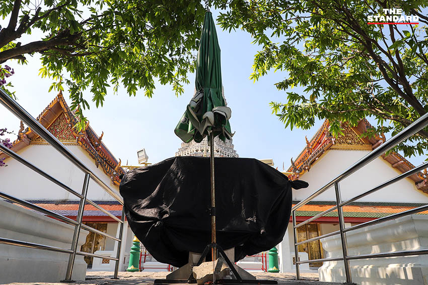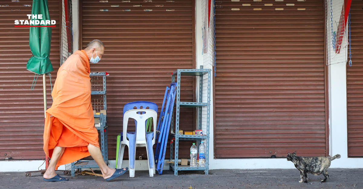 วันนี้ (6 มกราคม) ช่างภาพของ THE STANDARD สำรวจบรรยากาศรอบวัด ก็พบแต่ความเงียบเหงา ประตูวัดขึงด้วยไวนิลปิดประกาศชี้แจงการปิดวัด ส่วนบรรดาร้านค้ารอบวัดก็ปิดด้วยเช่นเดียวกัน