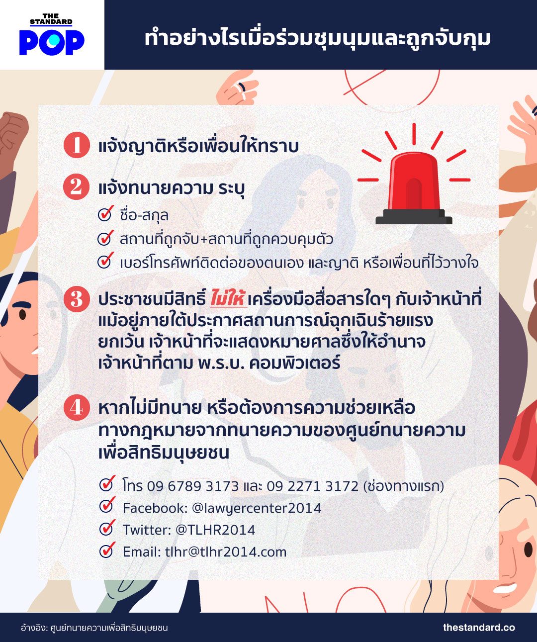 คำแนะนำจากศูนย์ทนายความเพื่อสิทธิมนุษยชน ในกรณีที่ร่วมชุมนุมและถูกเจ้าหน้าที่รัฐจับกุม ภาพประกอบ: นิสากร ฤทธาภัย TAGS: การเมืองการชุมนุมทางการเมืองศูนย์ทนายความเพื่อสิทธิมนุษยชนถูกจับกุม LOADING... ABOUT THE AUTHOR พลอยจันทร์ สุขคง Senior Content Creator ประจำกองไลฟ์สไตล์ สำนักข่าว THE STANDARD