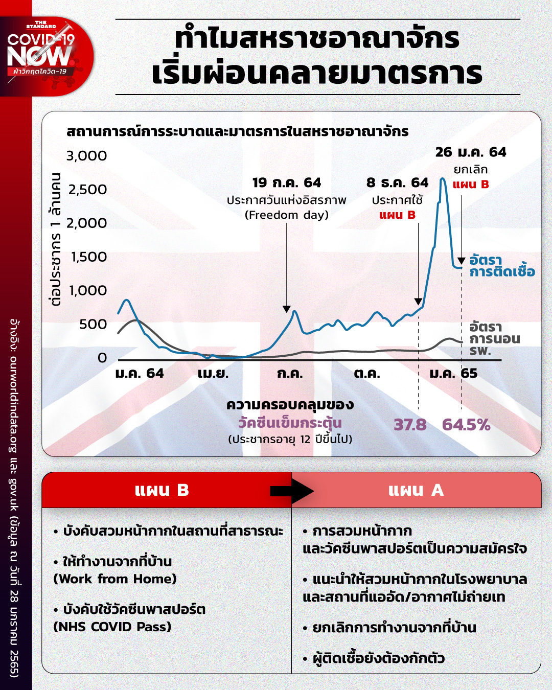 “วัคซีน การตรวจหาเชื้อ และยาต้านไวรัส ช่วยให้มั่นใจว่าเรามีระบบป้องกันที่แข็งแกร่งที่สุดในยุโรป และช่วยให้เรากลับไปใช้แผน A อย่างระมัดระวัง ซึ่งฟื้นคืนอิสรภาพมากขึ้นให้กับประเทศ” ซาจิด จาวิด รัฐมนตรีว่าการกระทรวงสาธารณสุขแห่งสหราชอาณาจักร กล่าวเมื่อวันที่ 27 มกราคมที่ผ่านมา ซึ่งเป็นวันที่สหราชอาณาจักรเริ่มผ่อนคลายมาตรการโควิดอีกครั้ง หลังจากใช้แผน B มา 7 สัปดาห์