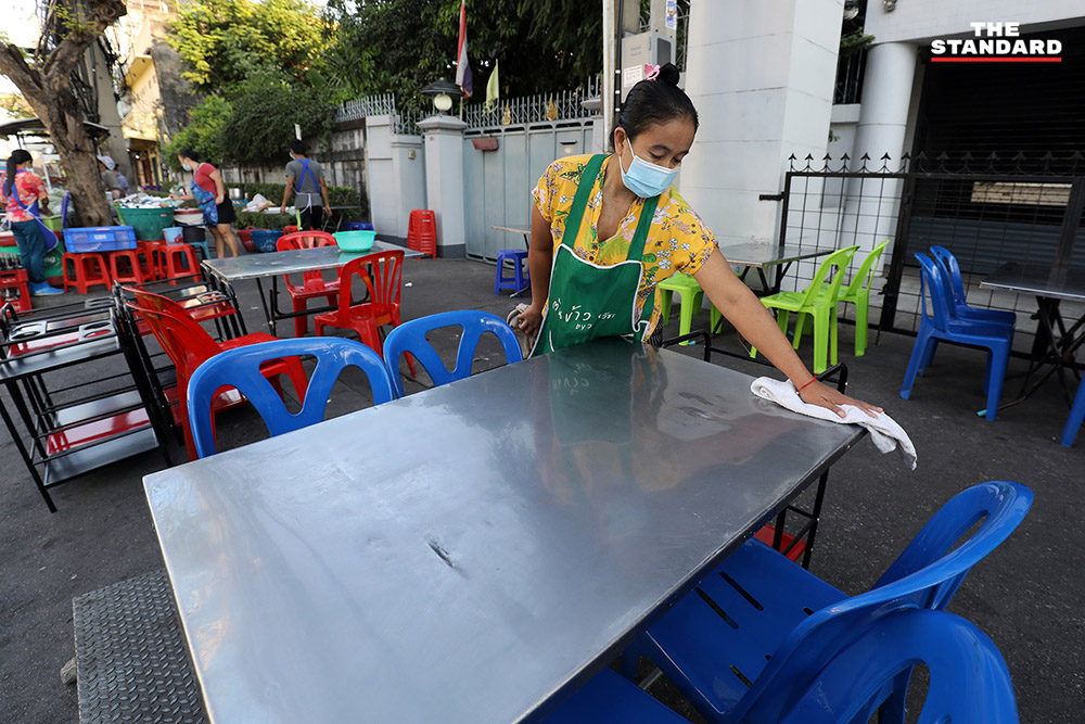 ช่างภาพ THE STANDARD ลงพื้นที่สำรวจร้านอาหารที่ตั้งอยู่บนถนนลาดหญ้า ย่านวงเวียนใหญ่ ที่วันนี้ (2 มกราคม) หลายร้านที่อยู่ในย่านนี้ติดป้ายให้บริการแบบสั่งกลับบ้านเท่านั้น และเริ่มยกเก้าอี้ ปิดพื้นที่นั่งภายในร้าน เพื่อเตรียมรับมือกับมาตรการที่ทางกรุงเทพมหานครกำลังจะประกาศ