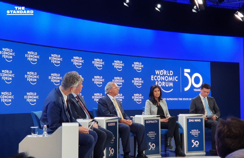 ขณะที่ผู้บริหารของ IMF พยายามให้ความหวังในห้องประชุมโดยบอกว่าเศรษฐกิจของปี 2020 น่าจะดีกว่าปี 2019 ที่ผ่านมา (วันที่ผู้เขียนเข้าฟังคือ 22 มกราคม ซึ่งยังไม่เกิดปัญหาไวรัสโคโรนาจากประเทศจีน) โดยเชื่อว่าผลจากการเจรจาการค้าเฟส 1 ที่ตกลงกันได้นั้นจะส่งผลดีต่อเศรษฐกิจโดยรวมของโลกให้ขยายตัวเพิ่มได้ราว 0.3% แต่ก็ยังมีบางประเทศที่อาจต้องเผชิญกับภาวะที่ชะลอตัว เช่น อินเดีย และประเทศเกิดใหม่บางแห่งที่โครงสร้างเศรษฐกิจยังเปราะบาง สิ่งสำคัญที่จอร์เจียนาพูดคือการเห็นพ้องกับธนาคารกลางสหรัฐฯ และเน้นย้ำว่าอัตราดอกเบี้ยนโยบายของธนาคารกลางไม่ใช่เครื่องมือเทวดาเพียงอย่างเดียวที่จะใช้แก้ไขปัญหาเสถียรภาพของระบบการเงิน ภาวะที่อัตราดอกเบี้ยต่ำยาวนานแบบนี้จะเกิดการแสวงหากำไรหรือ Search for yield ในระดับที่รุนแรงขึ้น เห็นได้จากการกระโดดเข้าไปลงทุนในกลุ่มสินทรัพย์เสี่ยงที่เพิ่มขึ้นทั่วโลก ซึ่ง IMF และบรรดาธนาคารกลางก็กำลังจับตาดูเป็นพิเศษ