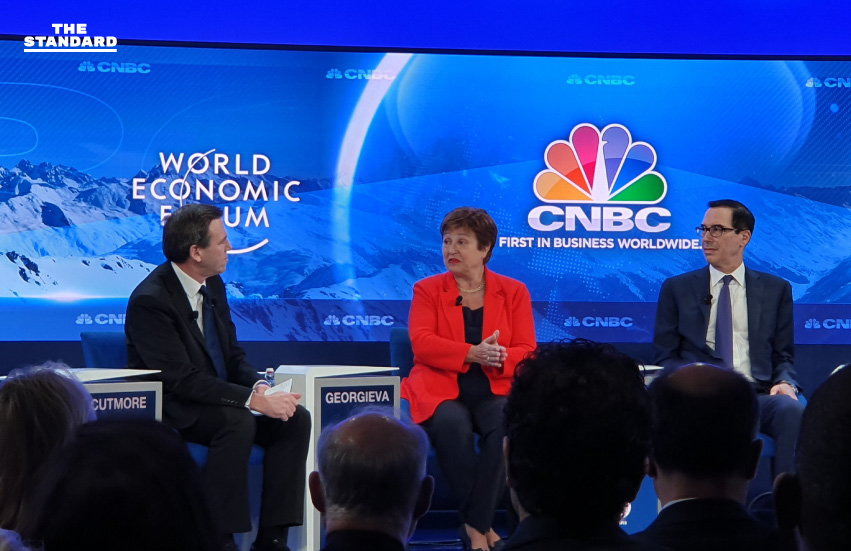 ผู้เขียนได้เข้าฟังการเสวนาหัวข้อ ‘The Future of Financial Markets’ ซึ่งมีตัวละครที่สำคัญของเศรษฐกิจและภาคการเงินโลก นั่นคือ สตีเวน มนูชิน รัฐมนตรีว่าการกระทรวงการคลังของสหรัฐฯ และคริสตาลินา จอร์เจียวา ผู้จัดการกองทุนการเงินระหว่างประเทศ (IMF) เข้าร่วมการเสวนา โดยมนูชินส่งสัญญาณชัดเจนว่าการเจรจาการค้าเฟส 2 ระหว่างสหรัฐฯ และจีนอาจจะเกิดขึ้นหลังจากการเลือกตั้งประธานาธิบดีสหรัฐฯ ในเดือนพฤศจิกายนปีนี้ผ่านพ้นไปแล้ว ซึ่งเป็นไปตามที่หลายฝ่ายคาด รัฐบาลของทรัมป์จะดึงเกมยาวโดยรอดูผลจากการเจรจาในเฟสที่ 1 จากนั้นจะใช้ความชอบธรรมในการเป็นผู้กอบกู้วิกฤตจากสงครามการค้าและโหมกระแสชาตินิยมอเมริกันชน ดึงคะแนนเสียงจากชนชั้นกลาง กลุ่มเกษตรกร และกลุ่มฐานราก ให้เขากลับมานั่งตำแหน่งประธานาธิบดีต่อในเทอมที่ 2