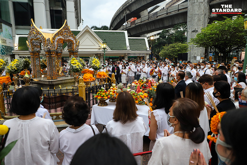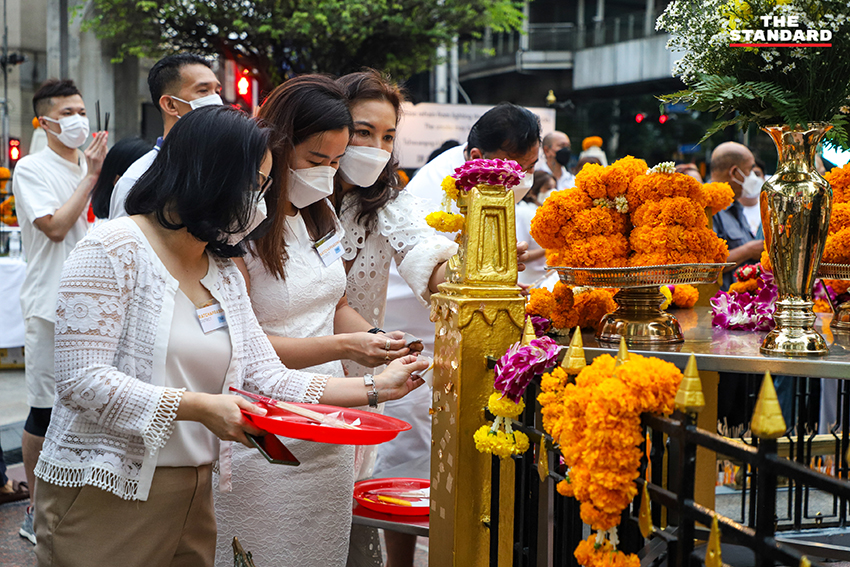 การจัดพิธีบวงสรวงใหญ่ครั้งนี้ เนื่องในโอกาสเปิดประเทศรับนักท่องเที่ยว เพื่อเป็นสิริมงคลต่อการทำค้าขายของผู้ประกอบการย่านราชประสงค์หลังจากที่โรงแรม ร้านค้าต้องปิดตัวในช่วงโควิดระบาดหนักก่อนหน้านี้