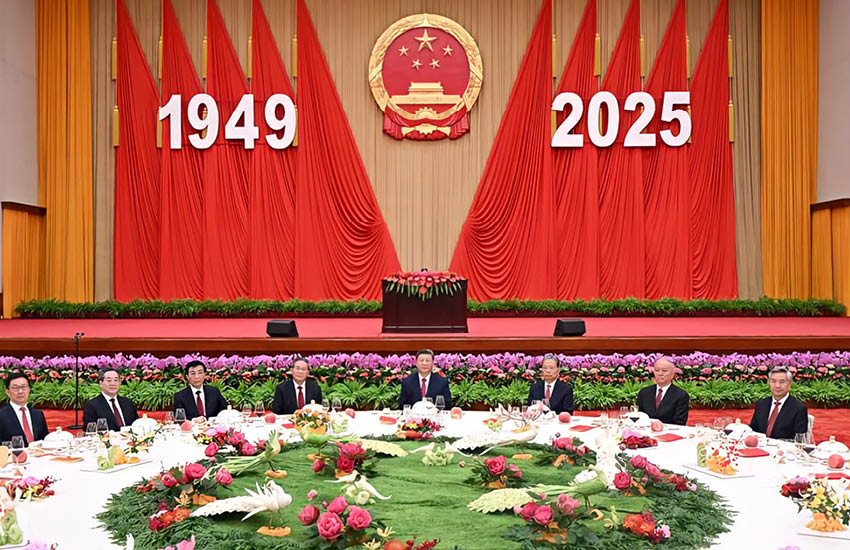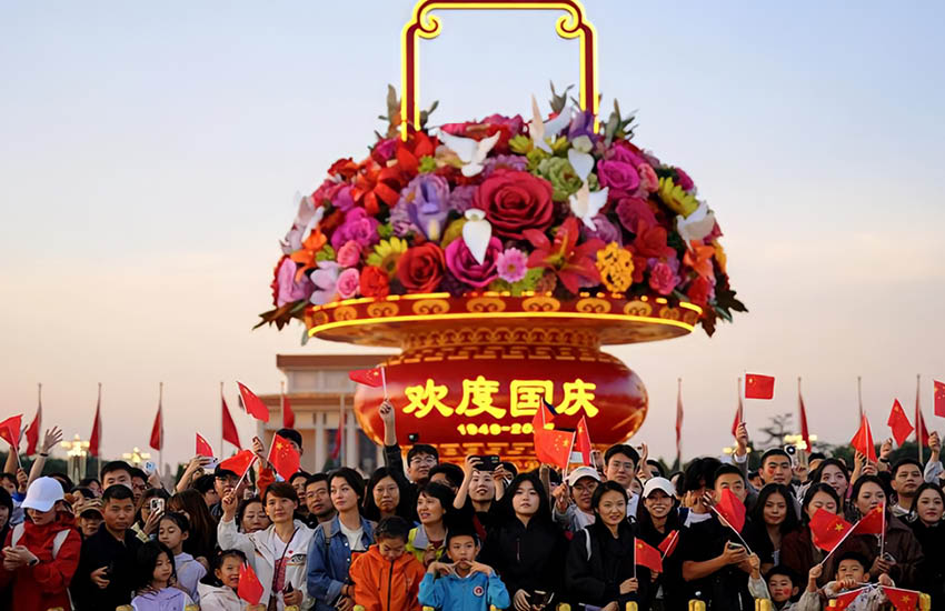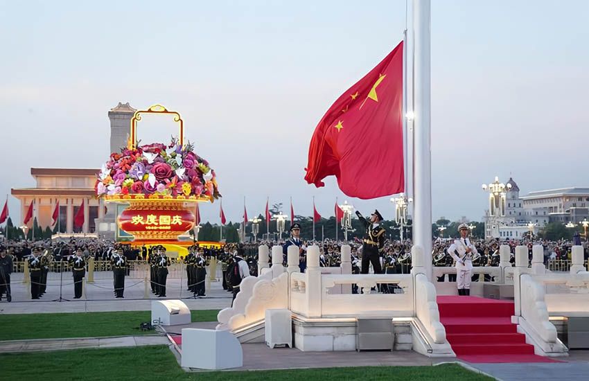 มีการจัดพิธีเชิญธงชาติจีนขึ้นสู่ยอดเสา เนื่องในวาระครบรอบ 76 ปี การก่อตั้งสาธารณรัฐประชาชนจีน (PRC) ซึ่งถือเป็นวันชาติจีน โดยมีประชาชนเดินทางมาร่วมรับชมพิธีการดังกล่าวกันอย่างเนืองแน่น