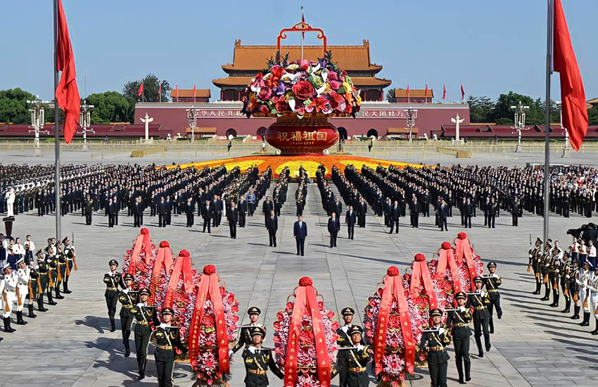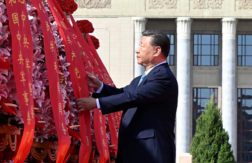สีจิ้นผิง ประธานาธิบดีจีน พร้อมด้วยคณะผู้นำพรรคคอมมิวนิสต์จีน (CPC) ได้เข้าร่วมพิธีวางพวงมาลาเพื่อรำลึกถึงวีรชนผู้เสียสละชีวิต ณ จัตุรัสเทียนอันเหมิน ใจกลางกรุงปักกิ่งของจีน เมื่อวานนี้ (30 กันยายน) ซึ่งเป็นหนึ่งวันก่อนถึง ‘วันชาติจีน’ ในวันนี้ (1 ตุลาคม)