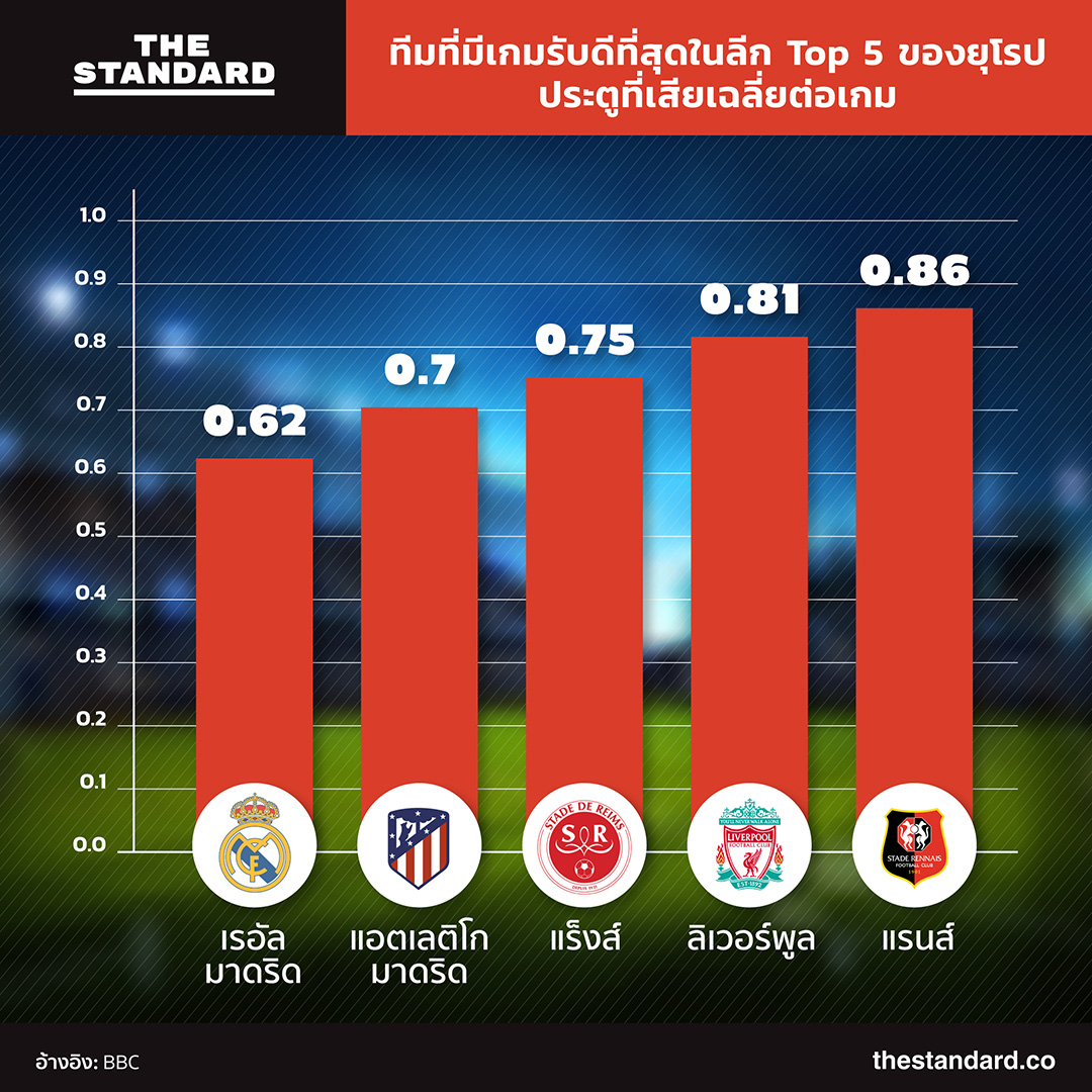สถิตินี้ดียิ่งกว่าทีมที่ถูกมองว่าเป็น ‘เต้ย’ ในเกมรับอย่าง แอตเลติโก มาดริด หรือ ลิเวอร์พูล ที่มีกองหลังที่ว่ากันว่าดีที่สุดในโลกคนปัจจุบันอย่าง เวอร์จิล ฟาน ไดจ์ค เสียอีก